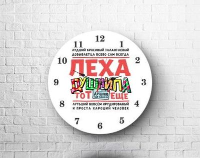 Часы настенные круглой формы с принтом, диаметр 20 см.