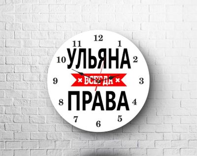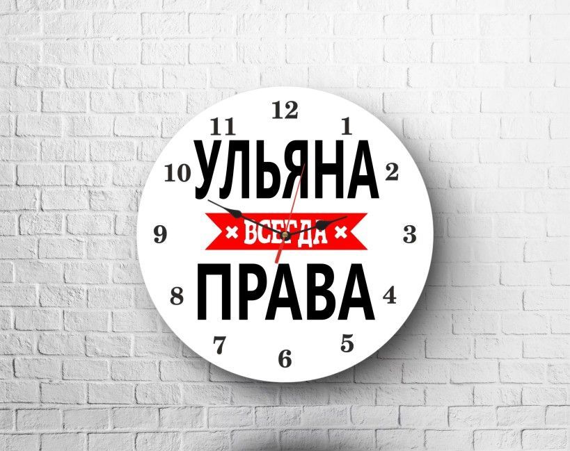 Часы настенные круглой формы с принтом, диаметр 20 см.